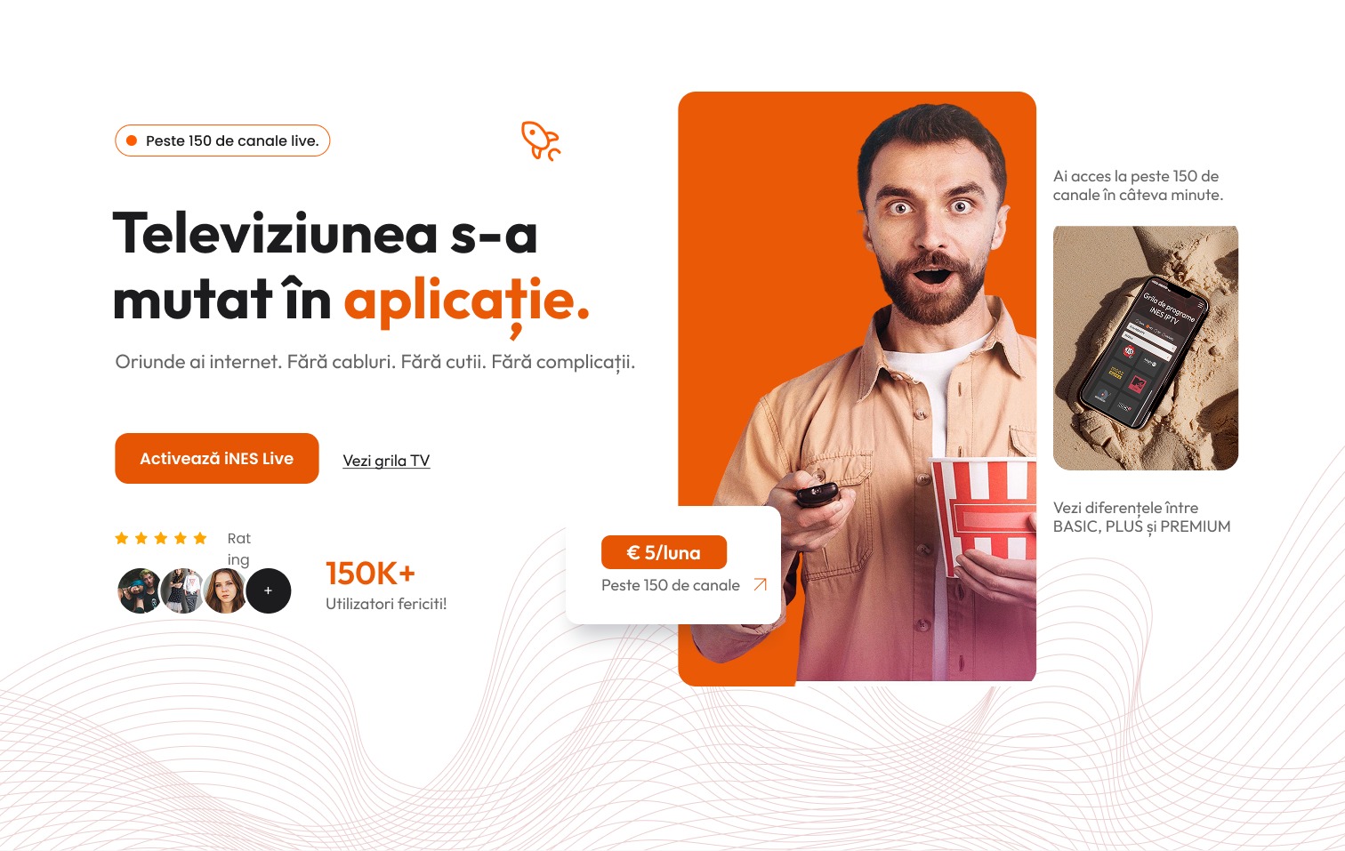iNES Live oferă trei tipuri de pachete TV, cu cel mai mare număr de canale HD și 4K într-un serviciu de televiziune online. Vezi programele structurate pe categorii tematice, fără STB sau cabluri.